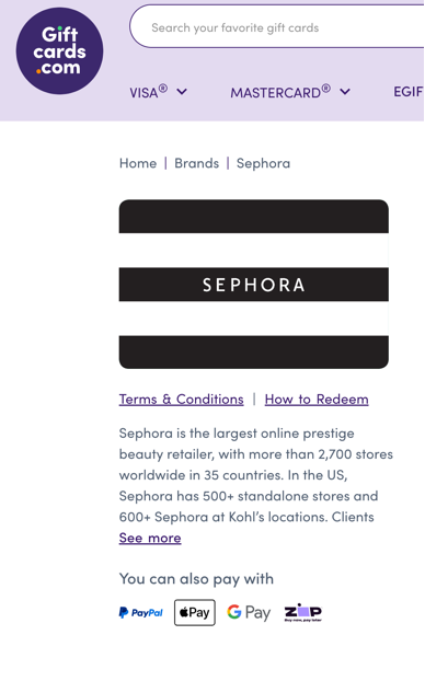 Here is a sample of redemption Instruction type, under "How to Redeem" for a Sephora card on Giftcards.com ![]() |